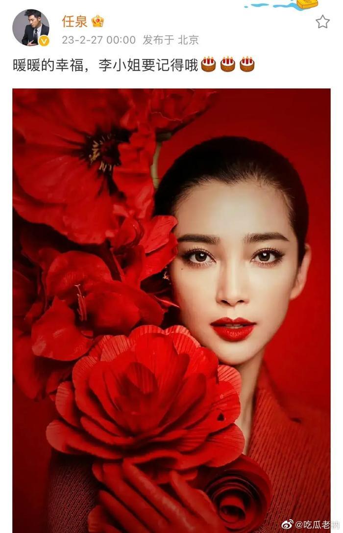 有没有觉得这个文案和这张配图的风格很熟悉?没错,就在五天前,李冰冰50岁生日,任泉卡点为李冰冰送上“暖暖的幸福,李小姐要记得哦”的祝福。