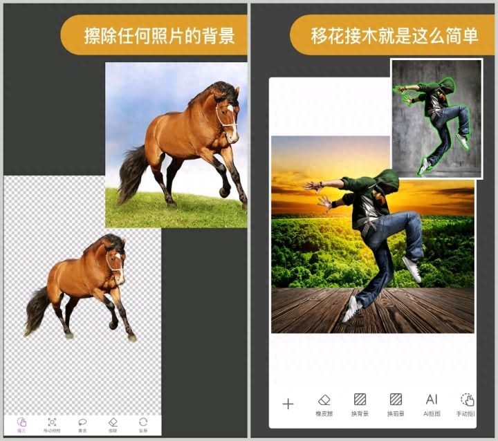 智能抠图换背景、拼图、100多种滤镜、图像合成无缝合成多张图片
