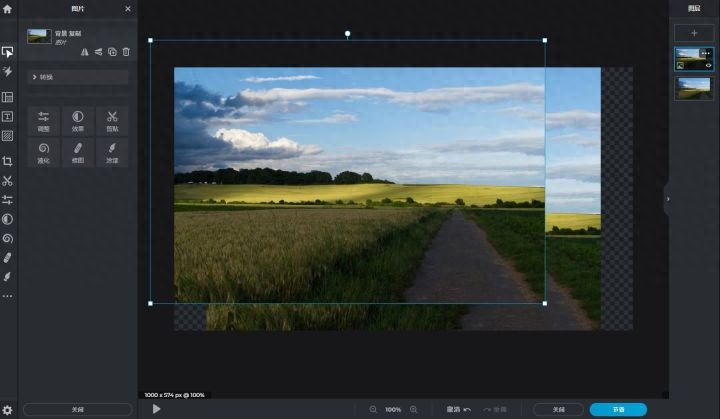 建议图片编辑功能选择前两者,并且,pixlr x可以对图片进行图层复制、图层透明度调节、图片裁剪、添加背景、调色等操作的操作,比较基础简单,适合新手来使用。