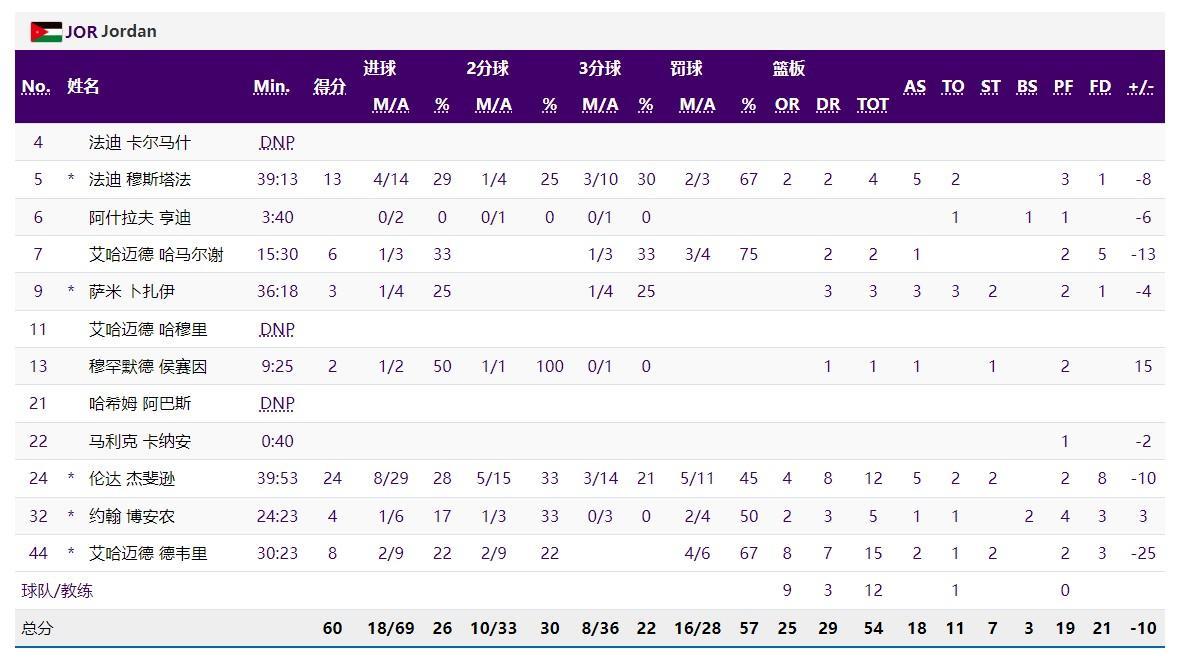 第二节,约旦单节打出19-14,上半场结束,两队战成31平。