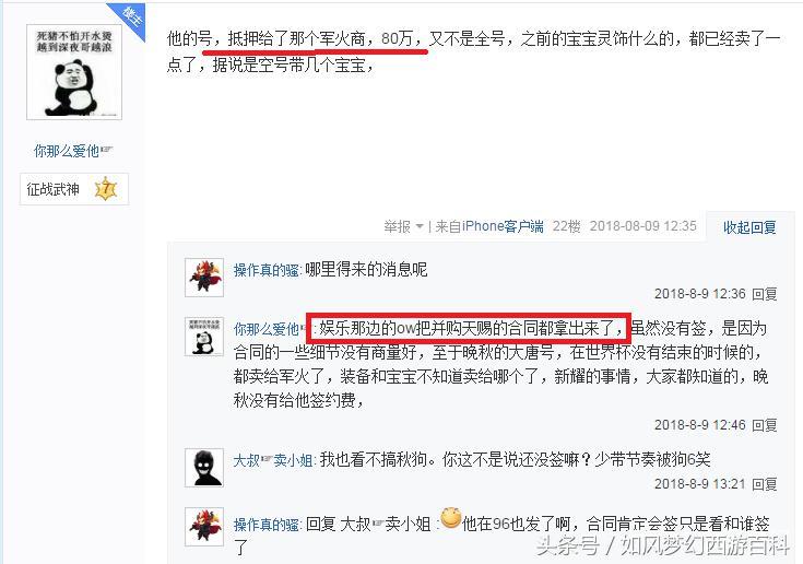 爆料人士表示80万只是抵押,并不是正式的出售。到期如果无法还钱,就只能卖号给军火了。目前晚秋已经在于娱乐168的老板洽谈合同细节,卖公会应该会很快发生了!