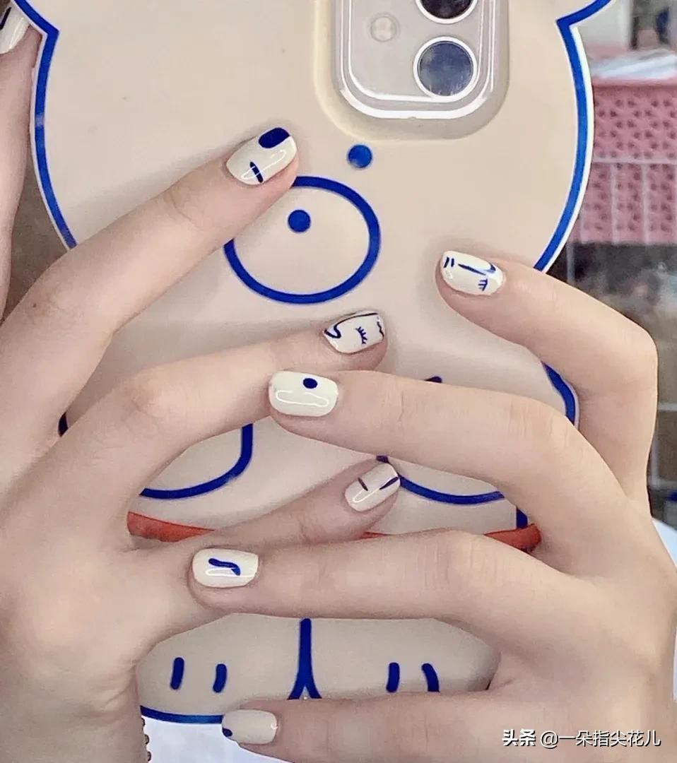 极简风格:一般以纯色系撞色,加简单线条彩绘为主,整体看起来很韩系,简约又时尚。