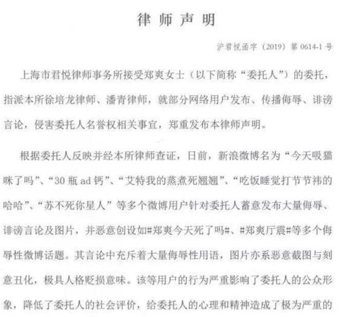 即使郑爽自己一直知道这件事情,但是她没有出来澄清,就是怕自己越想澄清大家就更加的会觉得这件事是真的。现在郑爽有了自己的新的恋情,这些黑子也是不会放过她,郑爽真的是有点可怜。不过前几天,她的男友就在自己的社交平台上面发表一篇文章就是说的这件事,还是一张律师声明,这个男朋友是真的很刚了。并且配文说“都在同一个美好的星球,又何必去浪费时间做些傻事打扰她的心情?这个时间可以去陪伴可以去游玩也可以去赚钱。。而不是去对她或者别人不尊重。”