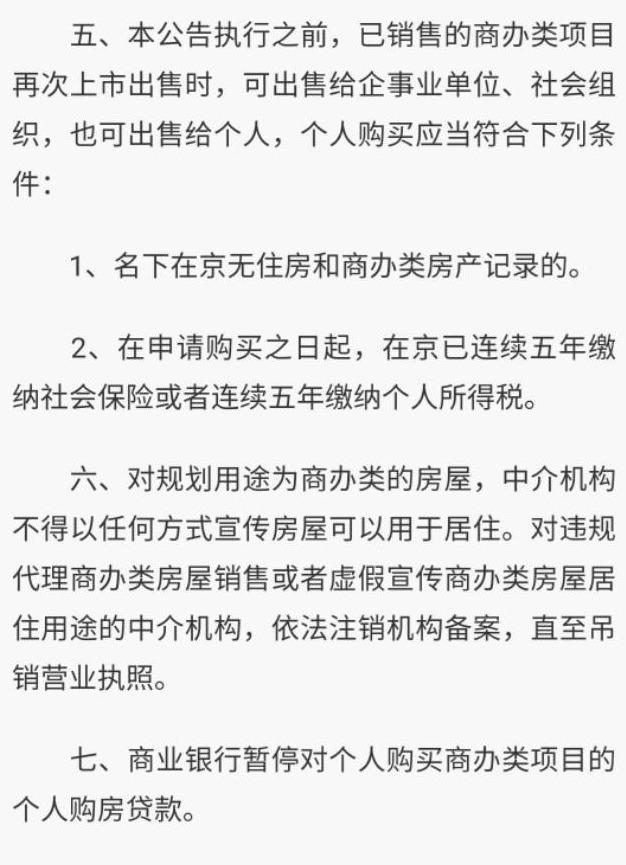 很多人应该忘不了2017年北京关于商住房出的新政策,下面是新政的部分截图,光看个人买商住房的条件,就可以看出来这对商办类房屋交易的影响,当时我就预测商办类房屋价格肯定会受到影响了。