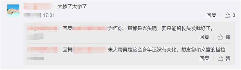 不少网友看到后,纷纷直呼到:朱子明真是这么多年还没有变化,想念您和文章的搭档。更有粉丝表示:为何你一直都是光头呢,要是能留长头发就好了。