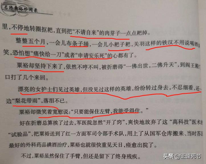 综上所述:粟裕刮骨疗伤,在世关云长 是编纂的;在翔实的史料下为什么还去编纂这类桥段呢? 假如阅读《无冕元帅》《名将粟裕珍闻录》《粟裕传》《虎啸血野》你便会总结一条就是,只要发生在十大元帅特别是彭林刘徐真实的佳话 他们都要移花接木到粟裕同志上边来,用来宣导粟裕同志战神、无冕元帅等等,以便培养广泛的受众,从而赚取高额的出版费用;他们才不会管是否真实。