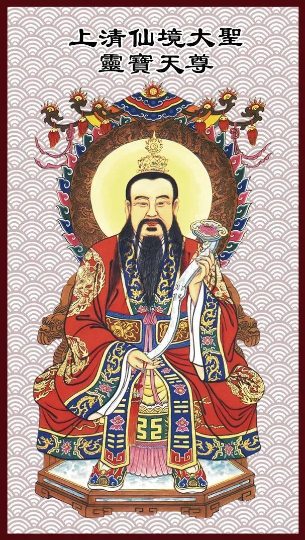 灵宝天尊是大道化身之一。《大洞真经》云:“上清高圣太上大道君者,盖玉宸之精气,庆云之紫烟,玉晖曜焕,金映流真,结化含秀,包凝立神,道君即广宣经箓,传乎万世。”