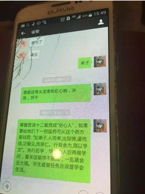 申屠佳颖平常经常跟母亲斗嘴,母亲也总是在微信发来很多鸡汤,唯独最后的这条微信鸡汤,69天了,小小的申屠佳颖不舍得删掉。