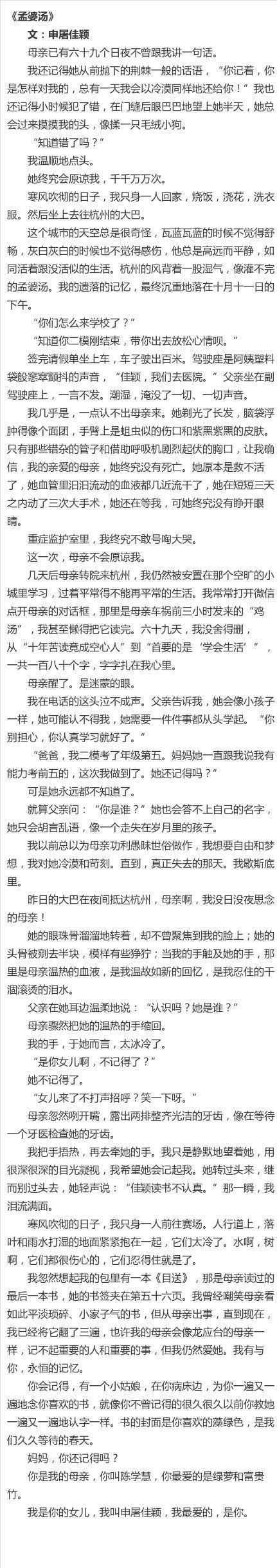 以下是女儿作文《孟婆汤》全文 及 媒体的后续报道