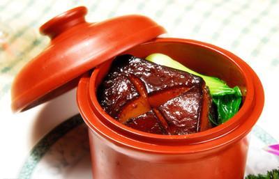 (苏轼发明的东坡肉,为杭州名菜,用猪肉炖制而成,一般是一块二寸许的方形猪肉,一半肥肉,一半瘦肉。苏轼也是一代美食家。)