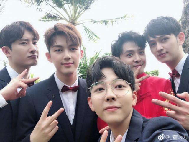 董力晒出与新郎以及伴郎团合照,不得不说,这个“组合”的颜值真是要逆天了。