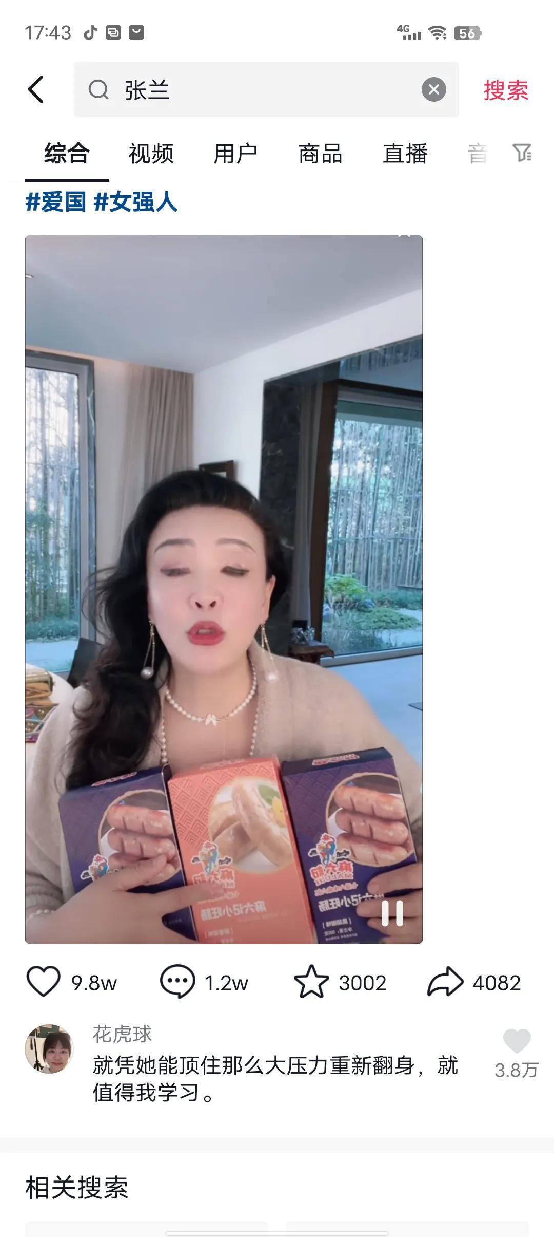 如今64岁的张兰紧跟潮流,亲自在直播间热情带货。
