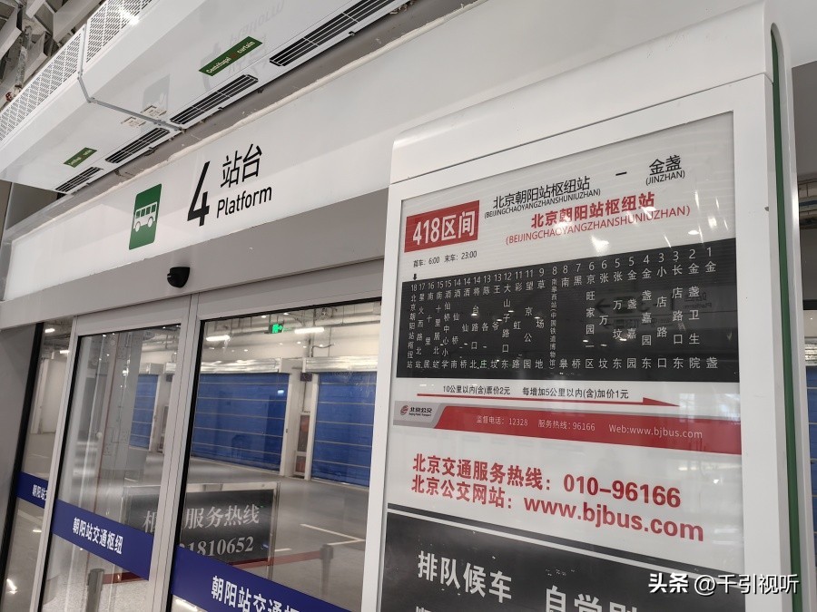 2.出站口出站,步行前往朝阳站交通枢纽1层乘坐公交418(金盏-交通枢纽区间)、专195路。