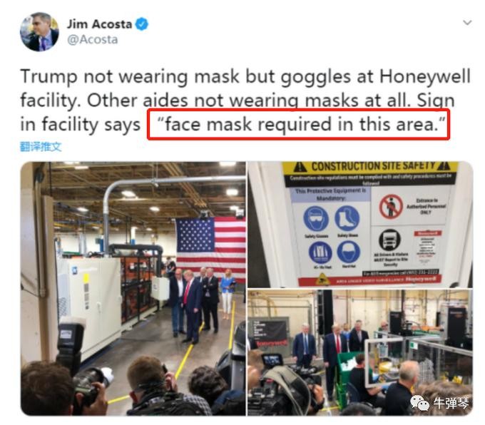 美国疾控中心号召美国人戴口罩,但特朗普去口罩工厂视察,全程都不戴口罩。