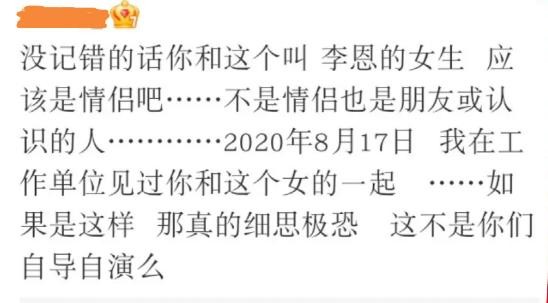 从表面上看,于嘉萌和李恩是站在对立阵营的两个人,可是有网友在于嘉萌微博下留言,称她曾经见到于嘉萌和李恩在一起,可能是情侣之类的亲密关系,质疑两人是在自导自演。