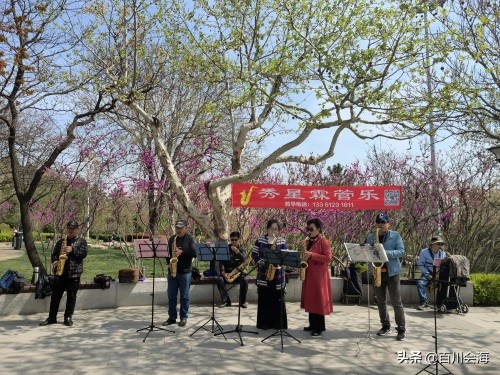 中心广场北侧是李村公园大家唱,每天上午九点开唱,既有小合唱,也有个人才艺展示,很多人前来围观欣赏。