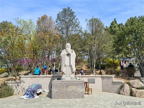 望海楼的南面的小广场上矗立着一尊孔子石像,在石像东侧的“文圣堂”里供奉着孔子牌位,望海楼外围的墙壁上刻着孔子周游列国等重要事件,在这里可以经受国学教育的洗礼,体验到中国传统文化的博大精深。