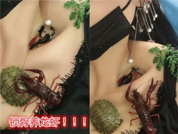 在这张图中的女生,除了养鱼和乌龟之外,锁骨上还爬着一只。其实看到看到这种生物的时候,相信很多人第一反应就是想要吃掉吧,但是看到这儿的时候还是忍不住的捏了一把汗,因为被它夹一下可是非常的痛的。