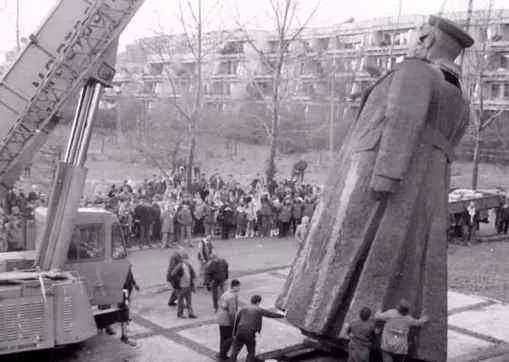 斯大林的雕像被推倒