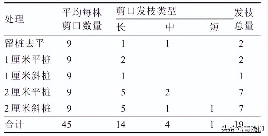 表6 自根砧一年生树剪口留桩对发枝量影响