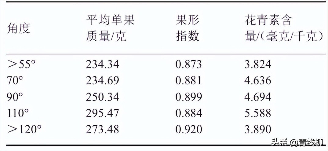 表3 拉枝角度对嘎拉果实质量和品质的影响