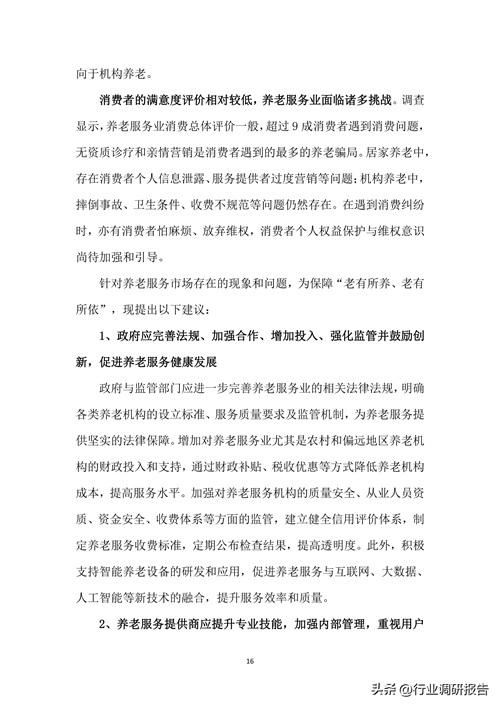 养老服务的数字化升级将是未来发展的重点。例如,通过建立统一的信息管理平台,消费者可以方便地查询养老机构资质和评价,减少信息不对称问题。