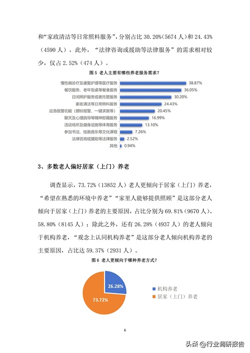在老年人群体中,慢性病诊疗、康复护理和日常餐饮服务的需求尤为突出,分别占比38.87%和36.05%。这反映出老人对于健康管理和生活支持的迫切需求。