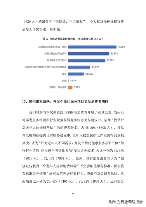 报告指出,养老服务的总体满意度得分为69.41分,显示消费者对服务质量仍有较高期待。特别是在居家养老中,过度营销和个人信息泄露问题尤为突出,分别影响59.52%和55.54%的消费者。
