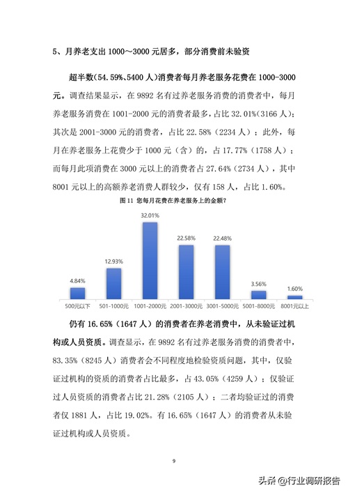 大多数老年人每月养老消费集中在1000-3000元区间,其中1001-2000元的消费者最多,占32.01%。这表明养老服务产品需在定价和服务内容上平衡老年人的经济承受能力与实际需求。