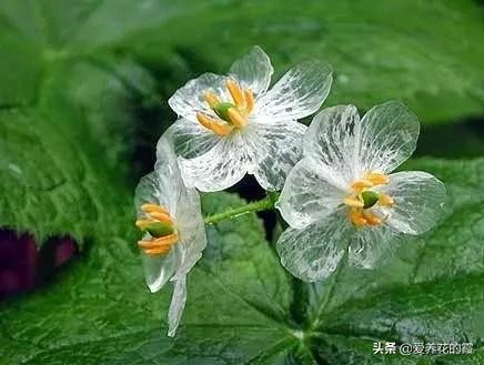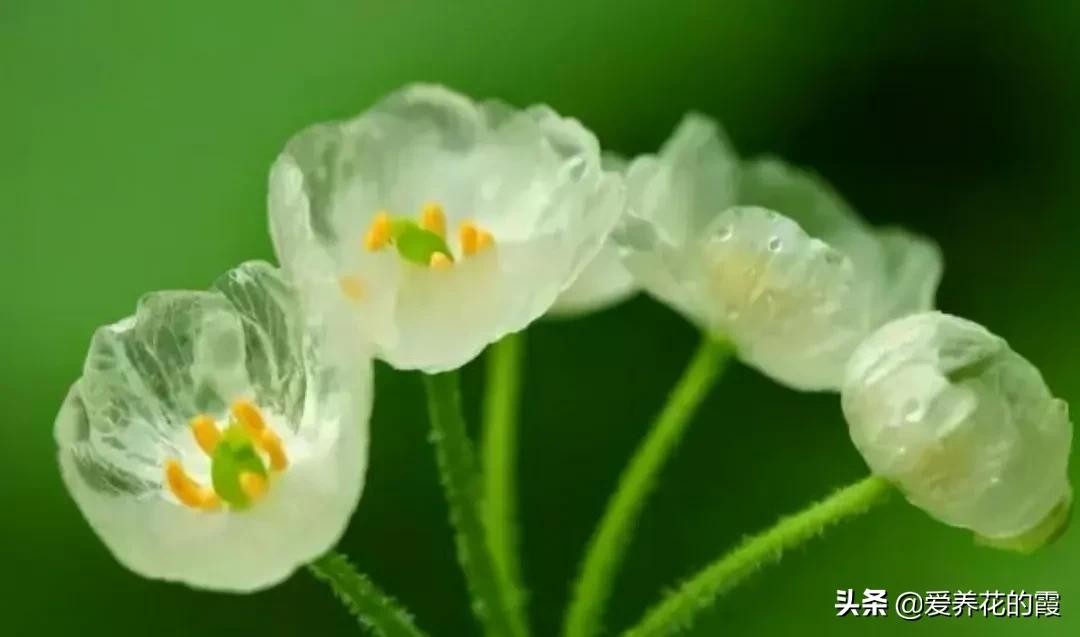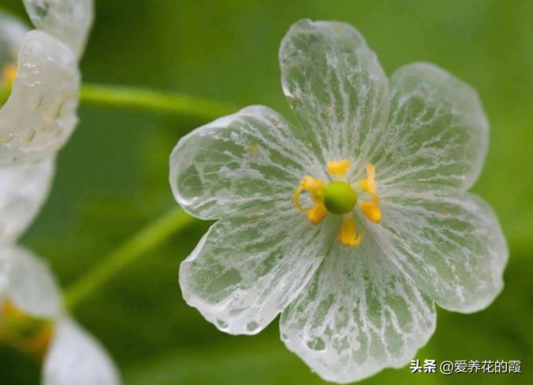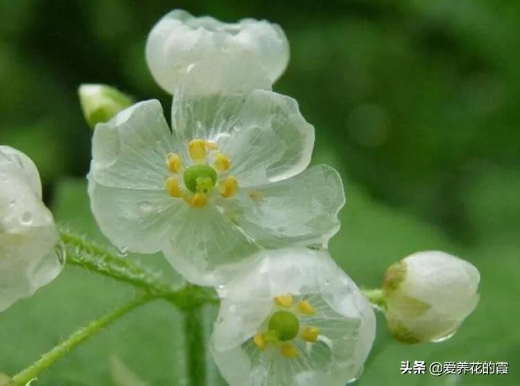 一朵朵小花看着没啥特色,特别神奇的是,小花瓣在淋雨后就会变得透明。