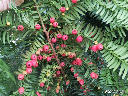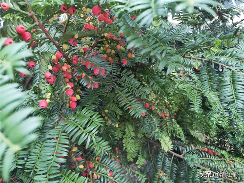 在前期的图文之中,清江鹤为各位亲们各位老师介绍的“裸子植物门松杉纲红豆杉目红豆杉科”植物“香榧子”,与“红豆杉”是同目同科但不同属的植物。“香榧”是“榧树族榧树属”多年生乔木,而“红豆杉”则是“红豆杉族红豆杉属”多年生常绿乔木。