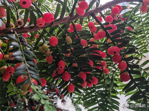 偶然间,发现厨房花坛上高植的一棵红豆杉树上缀满了红彤彤的果子,好有兴趣,于是就爬上花坛摘了好几颗果子放在嘴里,清江鹤顿感一股浓浓的香醇味,好久没食红豆杉果子的味道,迅刻涌上了心头。