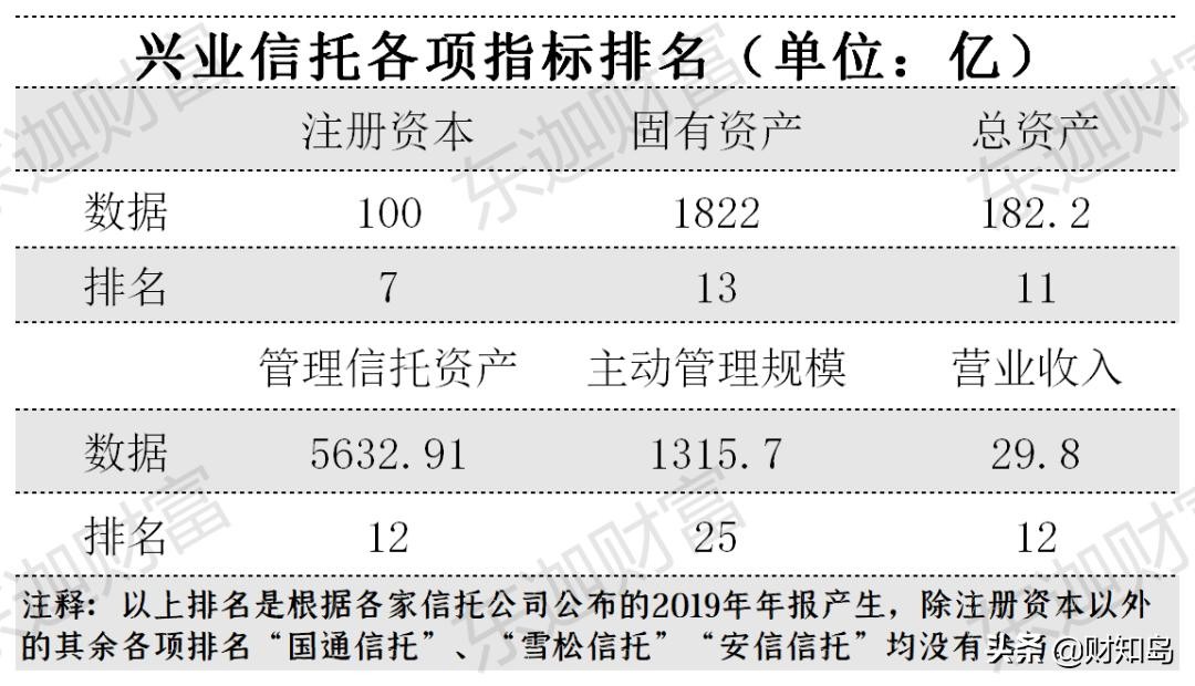 兴业信托注册资本100亿,行业第五。营收、总资产、固有资产处于行业前列。