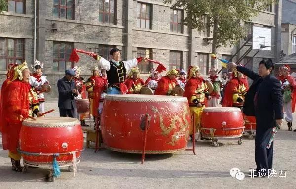 渭旗锣鼓是周至县二曲镇渭旗村的传统保留节目,源远流长,俗称“威风锣鼓”,古称“击鼓刺秦”。关于“击鼓刺秦”的传说,现有两种不同的版本,一种说法来自“荆坷刺秦”的典故,据说是为了纪念不畏凶险,敢于拼搏的英雄荆坷而编排的鼓谱。另一种说法为,春秋战国时期,诸候国相互征战,秦王每每出兵时,即击鼓助威,鼓舞士气,从而战无不胜,力挫群雄,一统中原。