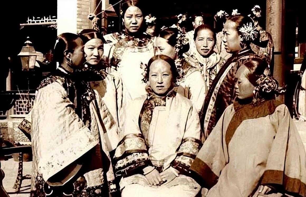 这些都是一个人的妻子,拍照的位置和服装就可以看出的地位