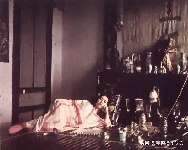 画面中的女子刚刚吸食完鸦片,整个人迷迷糊糊