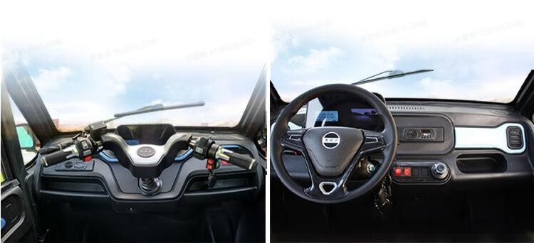 车内布局:作为一款万元车,该车内部配置虽不算豪华,但也是很齐全,配置液晶仪表,支持倒车影像、MP3收音机,拥有娱乐驾驶,而在操作方面,有“方向盘”和“手把式”可以自己选择,十分人性化,车辆采用两排座椅,可以乘载4人,一车全家都能出行。