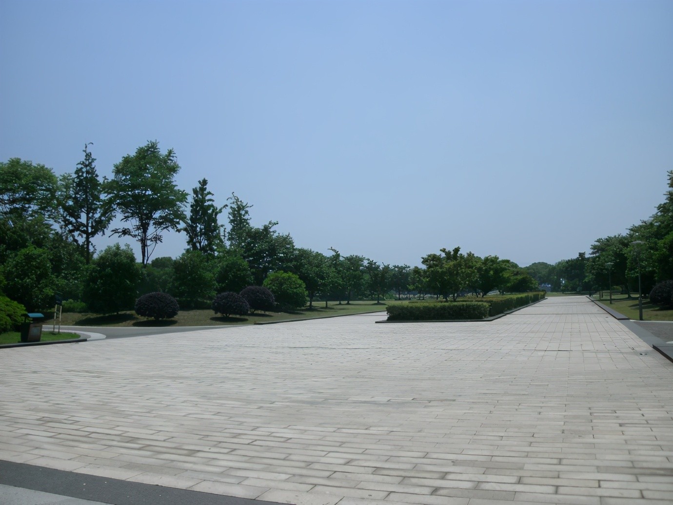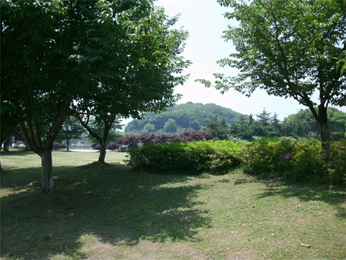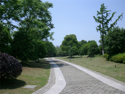 走入大门,豁然开朗,宽阔的景区大路,两侧是草坪林木,绿意盎然,生机勃勃。