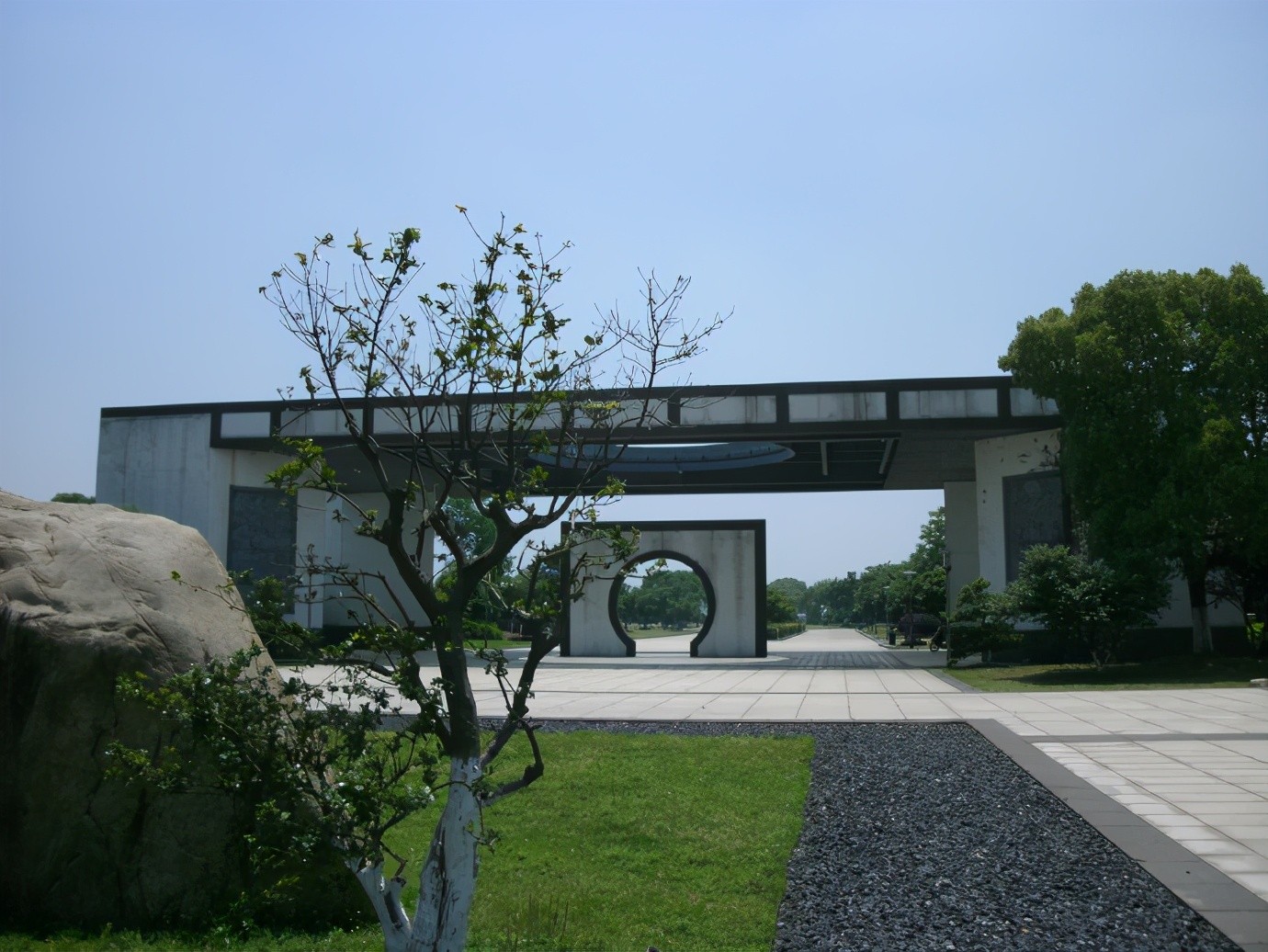 巨石后是石湖公园北门的门头,中间设计了一个月洞门,颇具匠心。