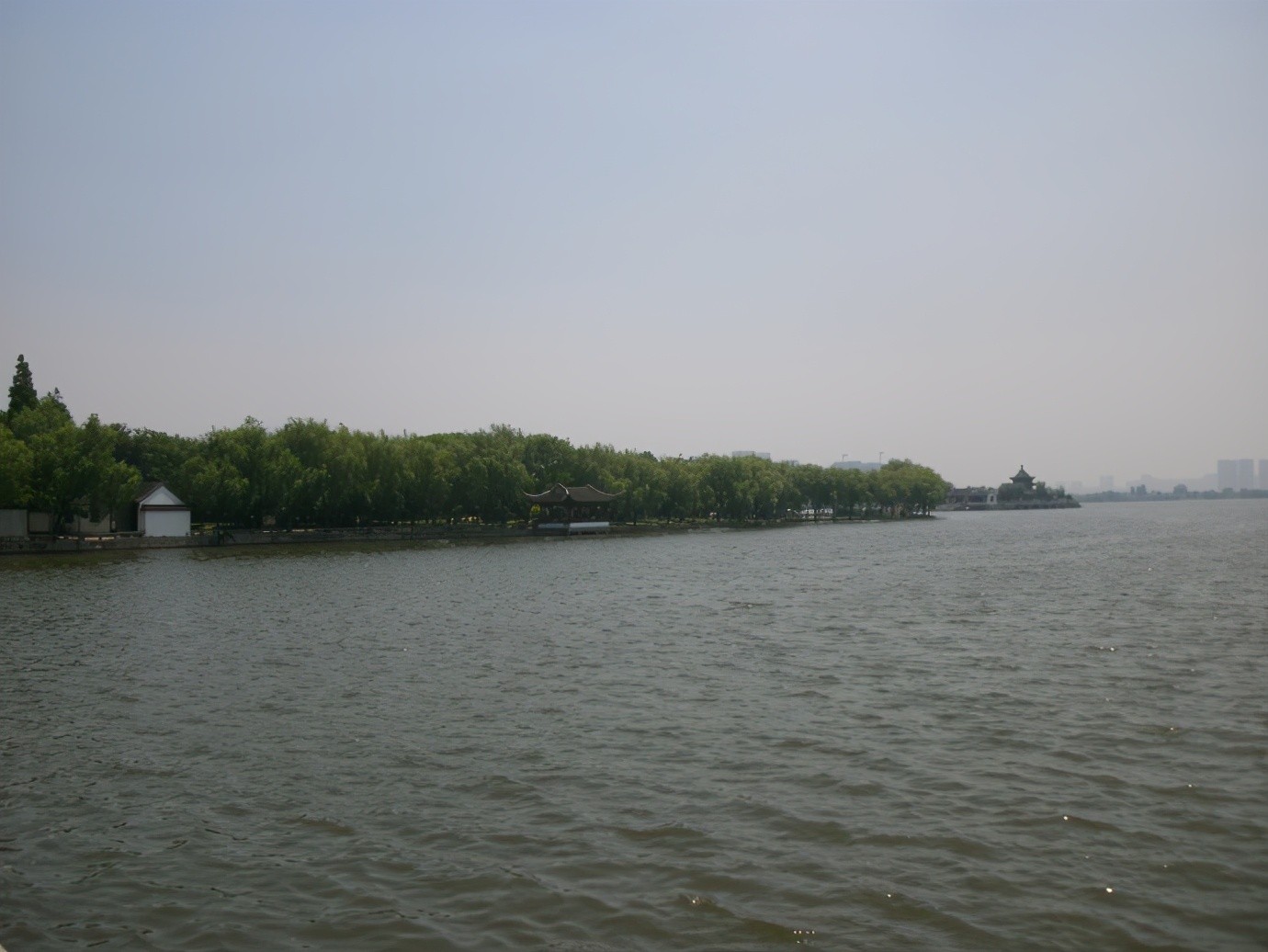 过石牌坊往南几十米,便是风平浪静时“湖平如镜碧千顷”的石湖了。
