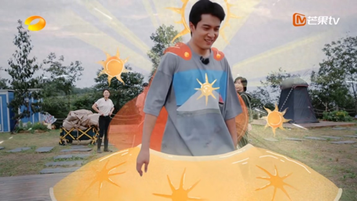在别人都觉得“搭帐篷大崩溃”的时候,他很轻松地说,搭和拆都一样,只要不下雨都不崩。于是收获了杨幂团长“你行你上”的安排。