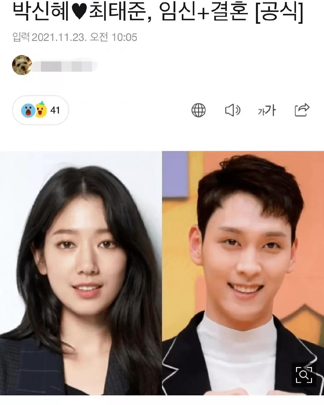 朴信惠的经纪公司在声明中透露了二人的恋爱时间线。2017年,朴信惠和崔泰俊确认恋爱关系,并约定成为对方一辈子的同伴者。如今,朴信惠还在怀孕初期,所以具体情况将有所保密。