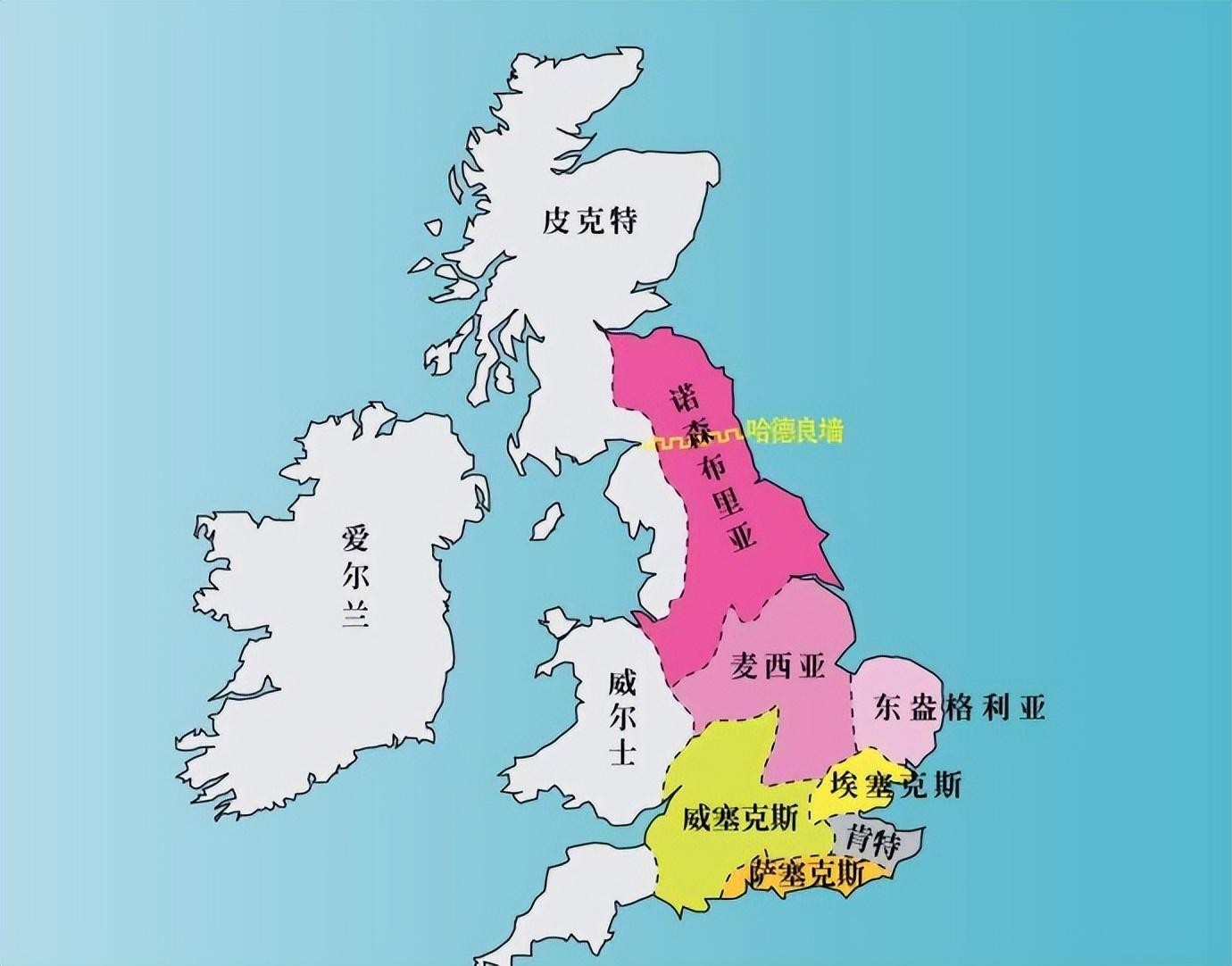 没多久来自欧洲大陆的盎格鲁、撒克逊和朱特三支日耳曼部族进入不列颠。这片土地开始逐渐被称为英格兰。“英格兰”一词其实就是指盎格鲁人的土地。盎格鲁人、撒克逊人和朱特人分别在不列颠岛建立了肯特王国、萨塞克斯王国(南撒克逊)、韦塞克斯王国(西撒克逊)、埃塞克斯王国(东撒克逊)、诺森布里亚、东盎格利亚王国和默西亚王国。这一时期被称为英格兰七国时代。公元829年韦塞克斯国王爱格伯特统一了英格兰七国。