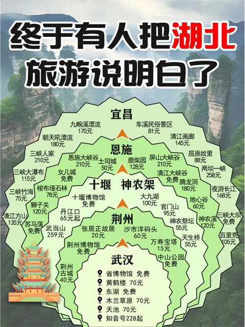 ✅最佳时间:春秋季(3-5月、9-11月),春季东湖的樱花盛开,秋季武当山的景色迷人,神农架也适合在春秋季节游览,避开夏季的高温。
