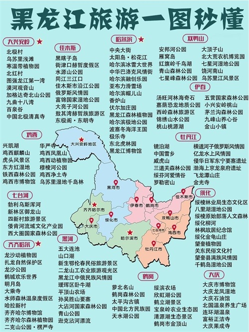 ✅精华景点:哈尔滨冰雪大世界、漠河北极村、镜泊湖、亚布力滑雪场等