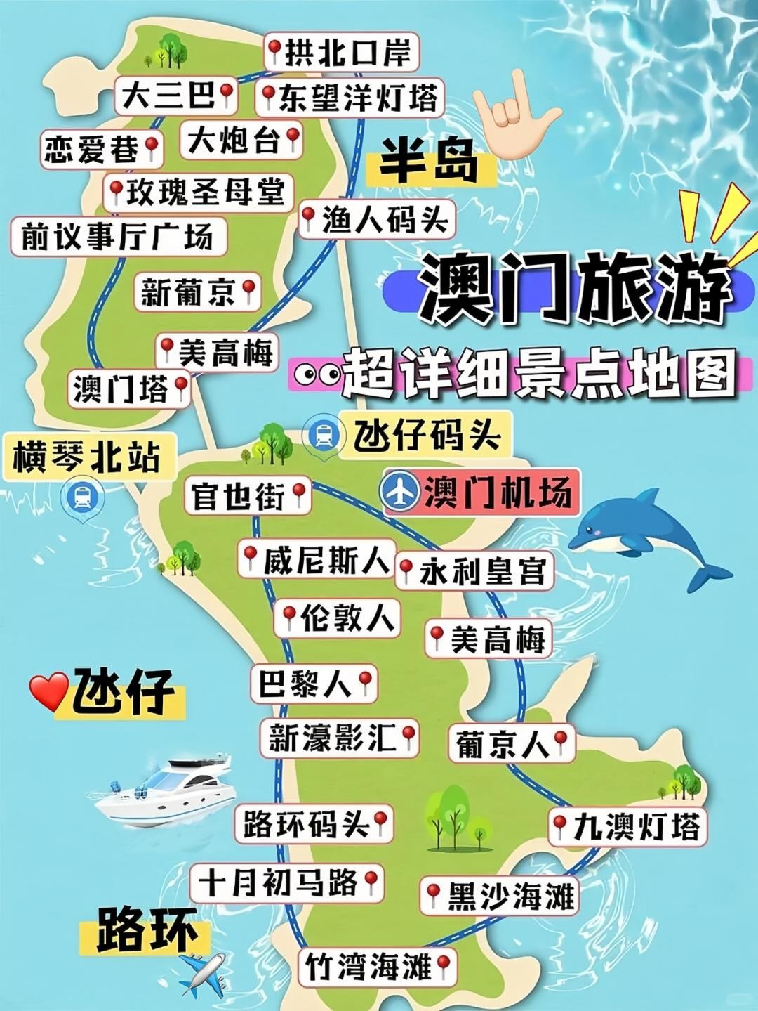 ✅精华景点:大三巴牌坊、澳门塔、威尼斯人度假村、妈阁庙、渔人码头等