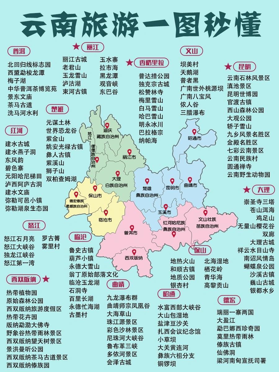 ✅精华景点:丽江古城、大理洱海、西双版纳热带雨林、香格里拉普达措国家公园、石林等