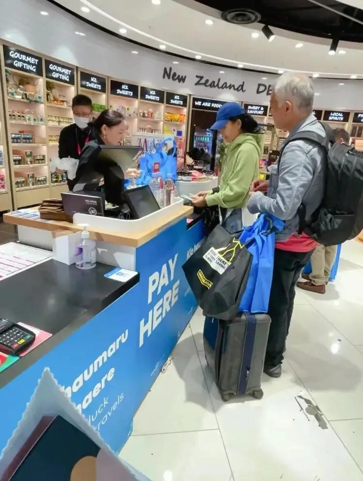 在网友分享的照片中,着装休闲年轻的陈瑾,正在奥克兰机场免税店的高档化妆品柜台,挑选商品。
