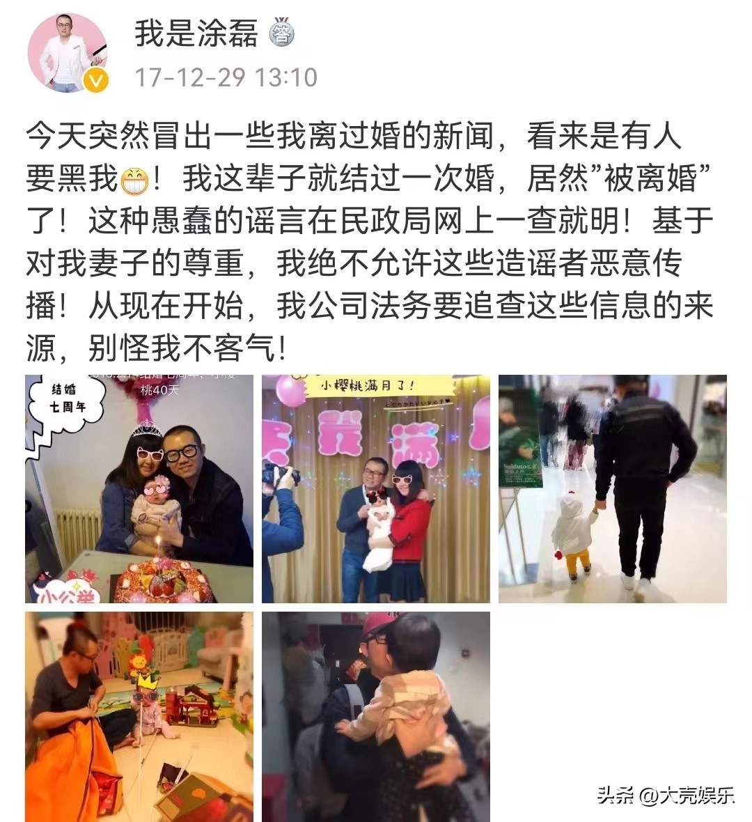 早在2017年,就有网友爆料,涂磊曾经离过婚,而且不止一次,为此涂磊还专门公开澄清过,说自己只结过一次婚。