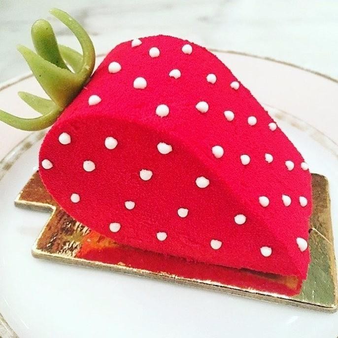 草莓蛋糕超级可爱,让人不舍得下口。